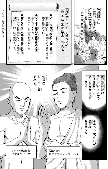 Brahmanismが動揺し、反バラモンanti-Brahminismを唱える新宗教new religions(仏教Buddhismとジャイナ教Jainism)が成立した。